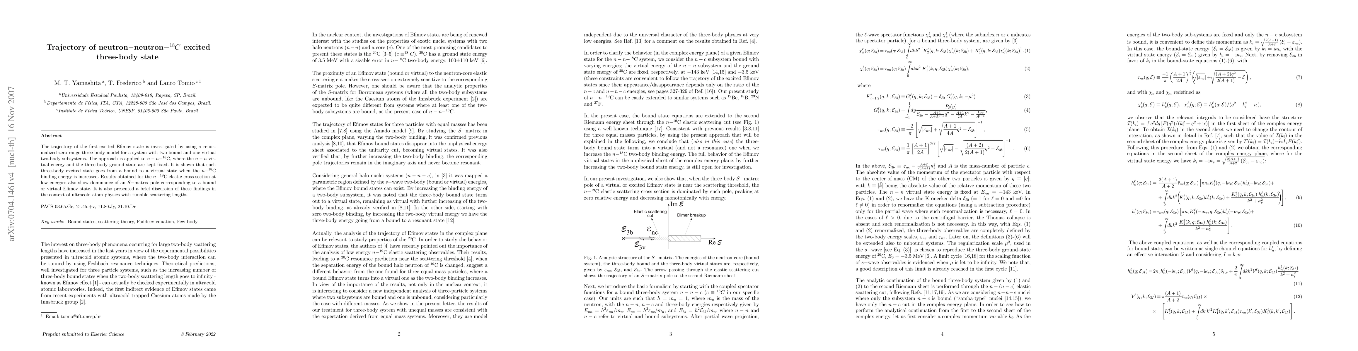 The trajectory of the first excited Efimov state is investigated by using a renormalized zero-range three-body model for a system with two bound and one virtual two-body subsystems. The approach is applied to $n-n-^{18}$C, where the $n-n$ virtual energy and the three-body ground state are kept fixed. It is shown that such three-body excited state goes from a bound to a virtual state when the $n-^{18}$C binding energy is increased. Results obtained for the $n-^{19}$C elastic cross-section at low energies also show dominance of an $S-$matrix pole corresponding to a bound or virtual Efimov state. It is also presented a brief discussion of these findings in the context of ultracold atom physics with tunable scattering lengths.