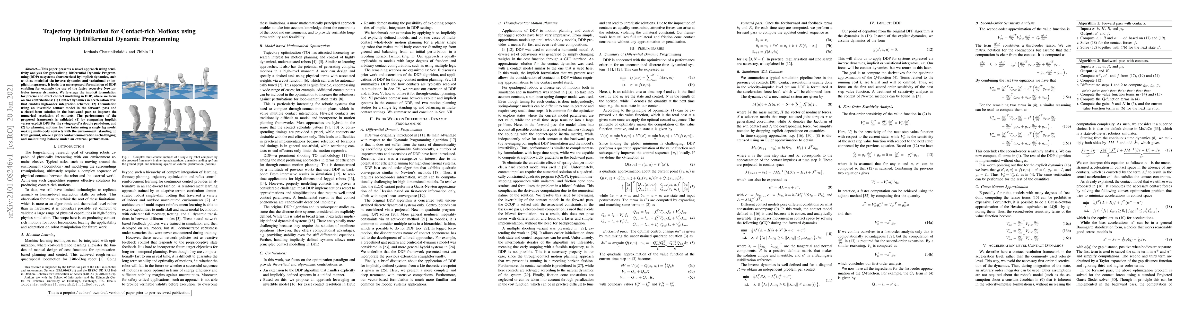 This paper presents a novel approach to optimization for systems with implicit dynamics, enabling precise contact modeling in differential dynamic programming (DDP). It improves numerical resolution of contacts and shows promising results in planning motions for tasks such as standing up from the ground.