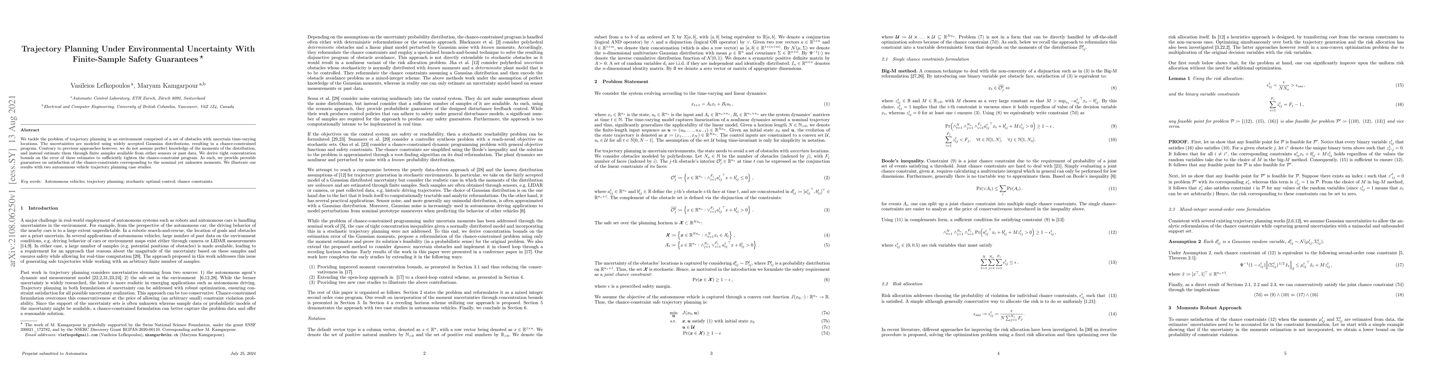 Researchers developed a method for trajectory planning in uncertain environments with tight guarantees on safety, using finite samples to estimate distribution moments.