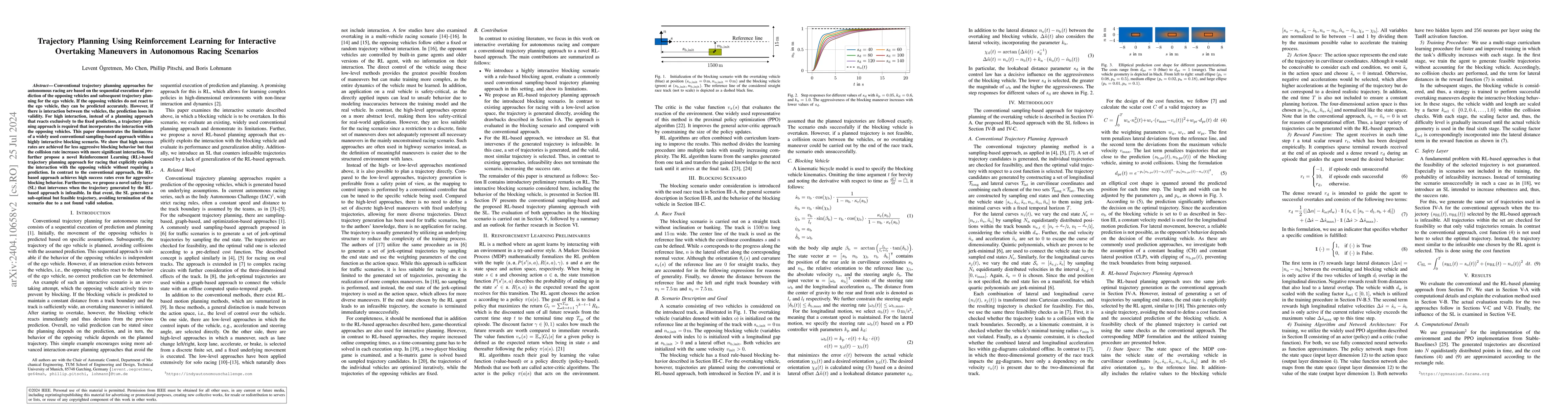 This paper compares conventional sampling-based trajectory planning with a novel Reinforcement Learning (RL)-based approach for autonomous racing scenarios, showing that RL achieves higher success rates even under aggressive blocking from opposing vehicles. It also introduces a safety layer to generate sub-optimal but feasible trajectories when the RL approach fails.