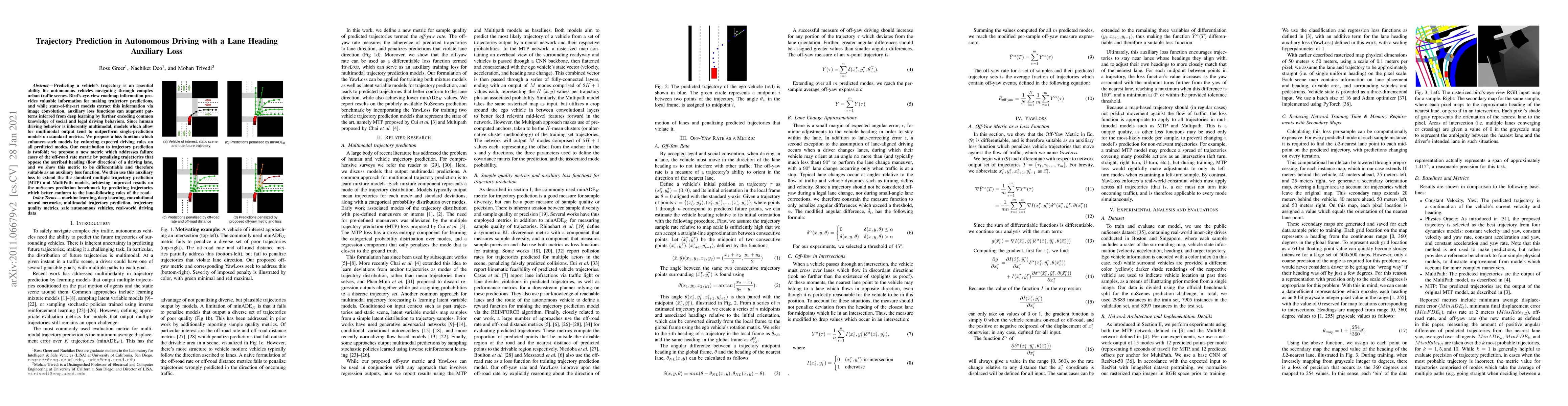 This paper proposes an auxiliary loss function to improve trajectory prediction in autonomous driving by incorporating lane heading information and enforcing expected driving rules. The new metric penalizes off-road trajectories and is shown to enhance multiple trajectory prediction models, leading to better performance on the nuScenes benchmark.