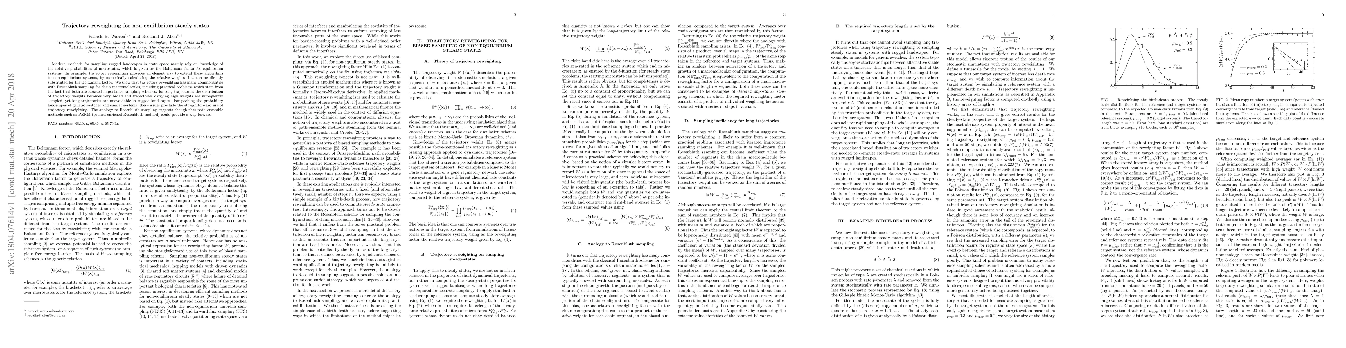A new method called trajectory reweighting is proposed to sample non-equilibrium steady states, but it faces challenges similar to existing methods like Rosenbluth sampling. The authors suggest using alternative path ensemble methods like PERM to overcome these issues.