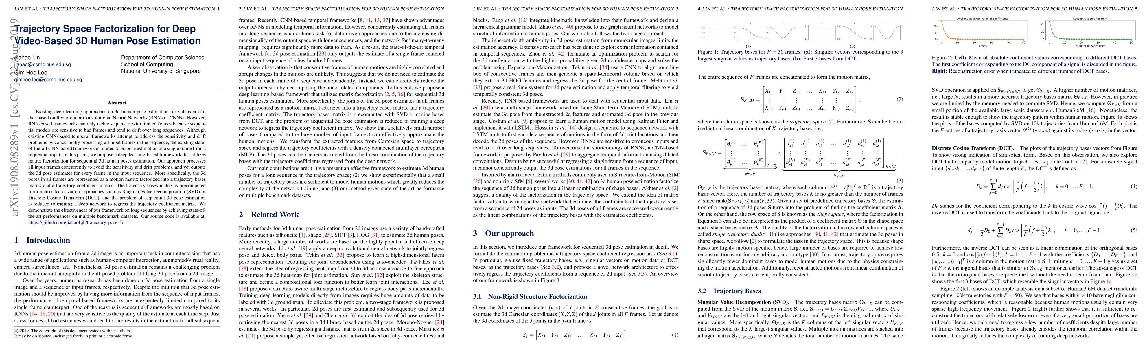 This paper proposes a deep learning framework for 3D human pose estimation in videos using matrix factorization to process all frames concurrently, addressing the limitations of RNN and CNN-based approaches. The method factorizes 3D poses into a trajectory bases matrix and a coefficient matrix, achieving state-of-the-art performance on benchmark datasets.