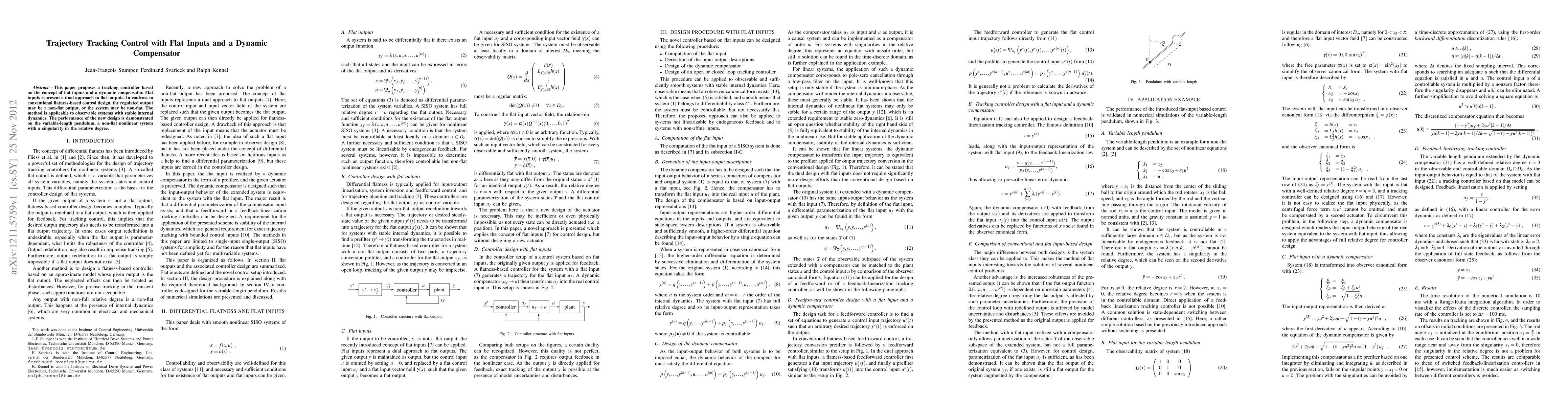 This paper proposes a tracking controller based on the concept of flat inputs and a dynamic compensator. Flat inputs represent a dual approach to flat outputs. In contrast to conventional flatness-based control design, the regulated output may be a non-flat output, or the system may be non-flat. The method is applicable to observable systems with stable internal dynamics. The performance of the new design is demonstrated on the variable-length pendulum, a non-flat nonlinear system with a singularity in the relative degree.