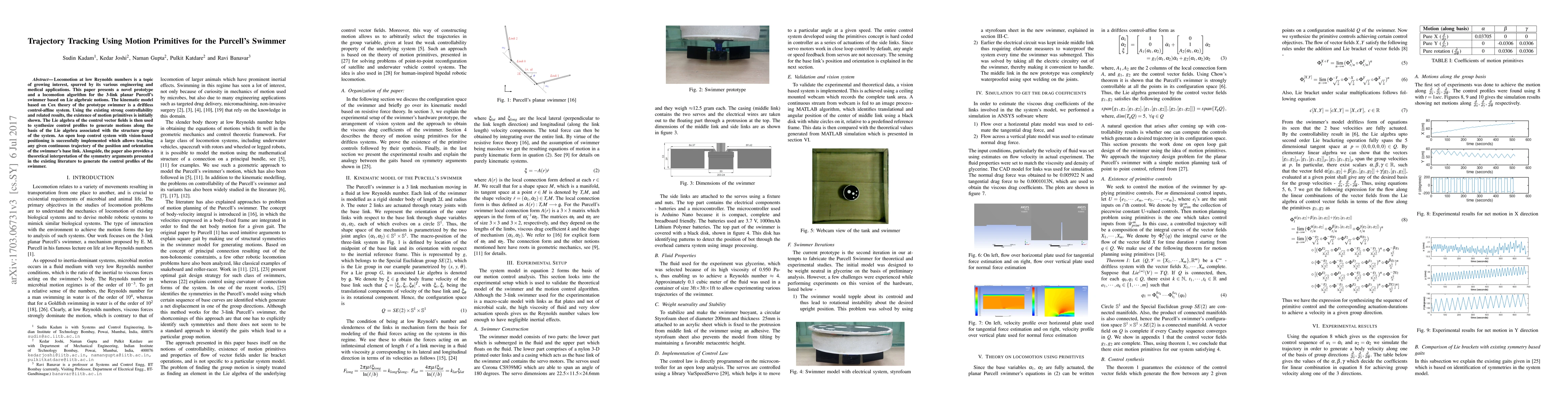 This paper develops a novel locomotion algorithm for a 3-link Purcell's swimmer using motion primitives and Lie algebraic control techniques, successfully implementing an open-loop control system with vision-based positioning for trajectory tracking. It also interprets symmetry arguments from existing literature to generate control profiles for the swimmer.