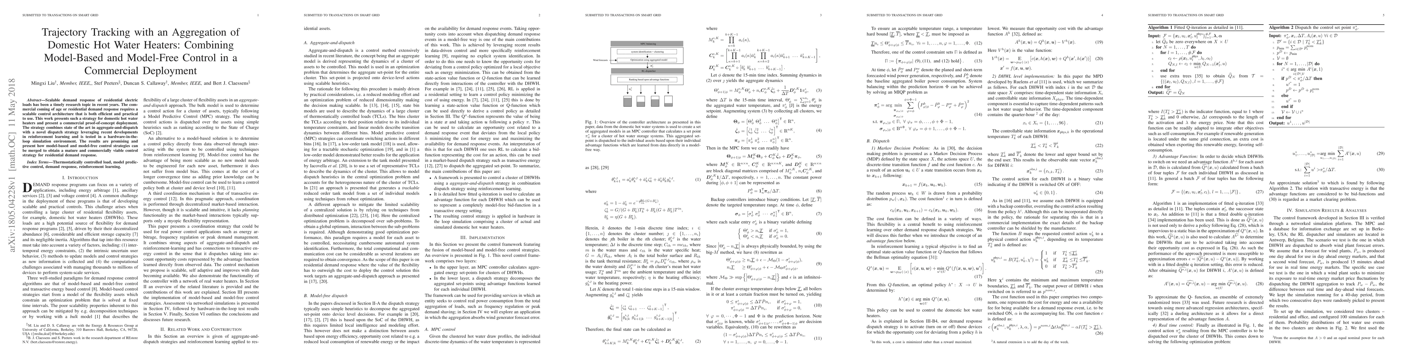 This paper proposes a scalable control strategy for aggregating domestic hot water heaters to manage residential demand response, combining model-based and model-free control techniques. The approach is demonstrated in a commercial proof-of-concept deployment, showing promising results for practical and efficient residential load management.