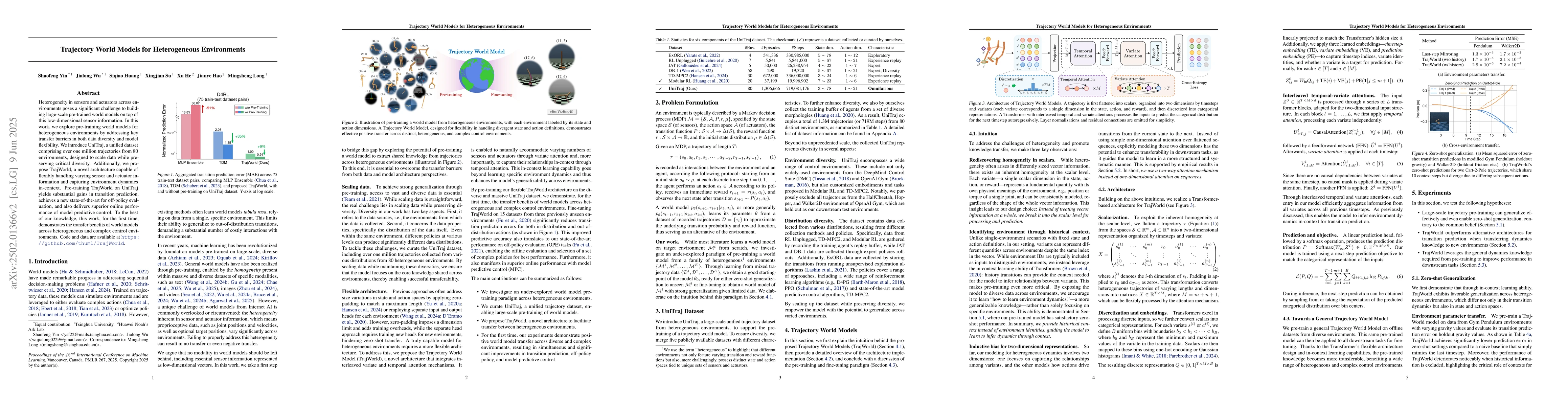 Researchers introduce UniTraj, a unified dataset, and TrajWorld, an architecture, to overcome challenges of pre-training world models for heterogeneous environments, achieving state-of-the-art performance in transition prediction and model predictive control.