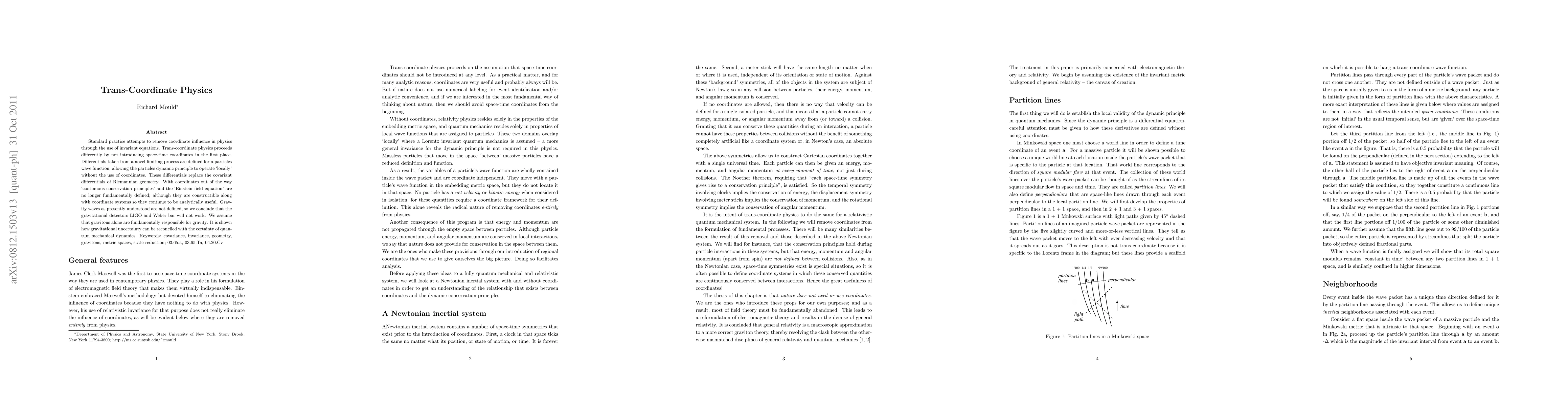 Trans-coordinate physics rejects traditional space-time coordinates, instead defining differentials for a particle's wave function to describe its dynamics locally. This approach implies that gravitons alone are responsible for gravity, challenging existing gravitational detectors like LIGO.