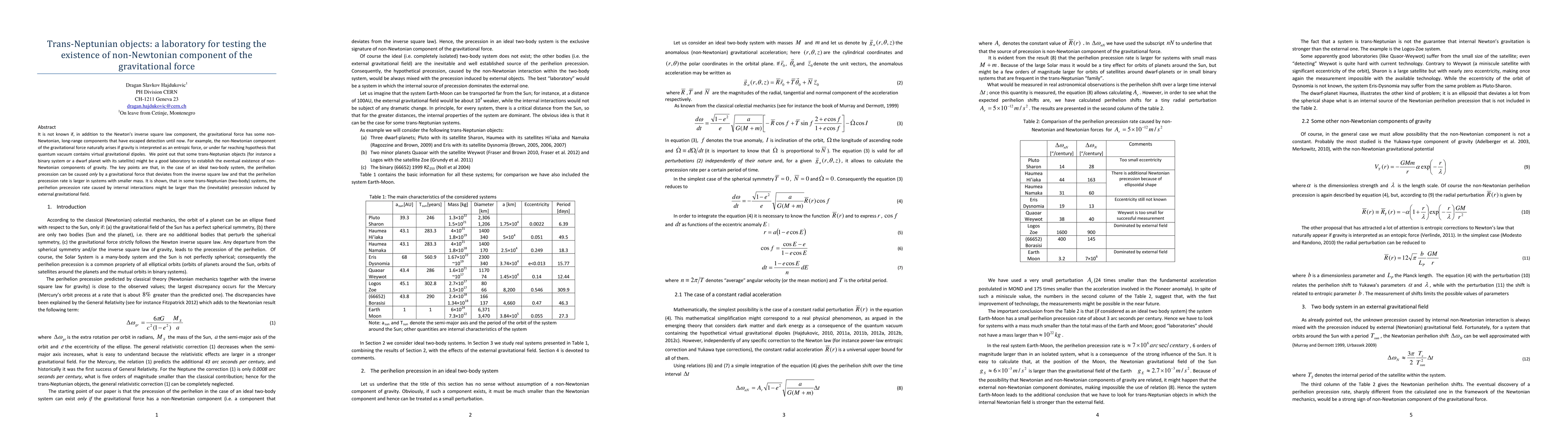 This paper explores the potential of trans-Neptunian objects to detect non-Newtonian components of gravitational force, suggesting that their perihelion precession could reveal deviations from Newton's inverse square law. It posits that certain binary systems or dwarf planets may serve as ideal laboratories for identifying such long-range gravitational anomalies.