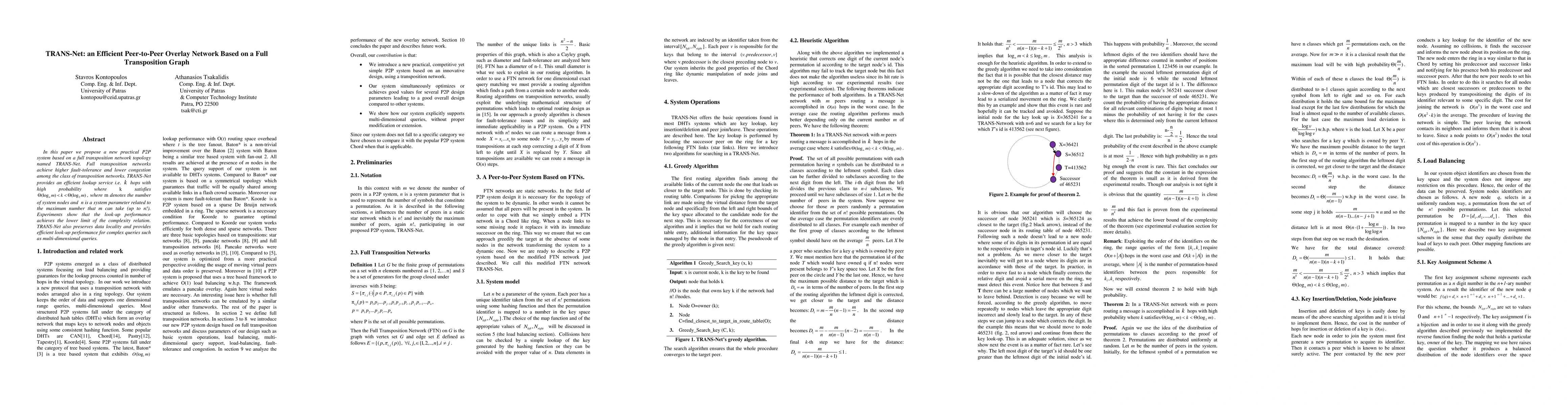 A new peer-to-peer network called TRANS-Net provides efficient lookup service with high probability, achieving near-optimal performance in terms of complexity, while also preserving data locality and supporting complex queries.
