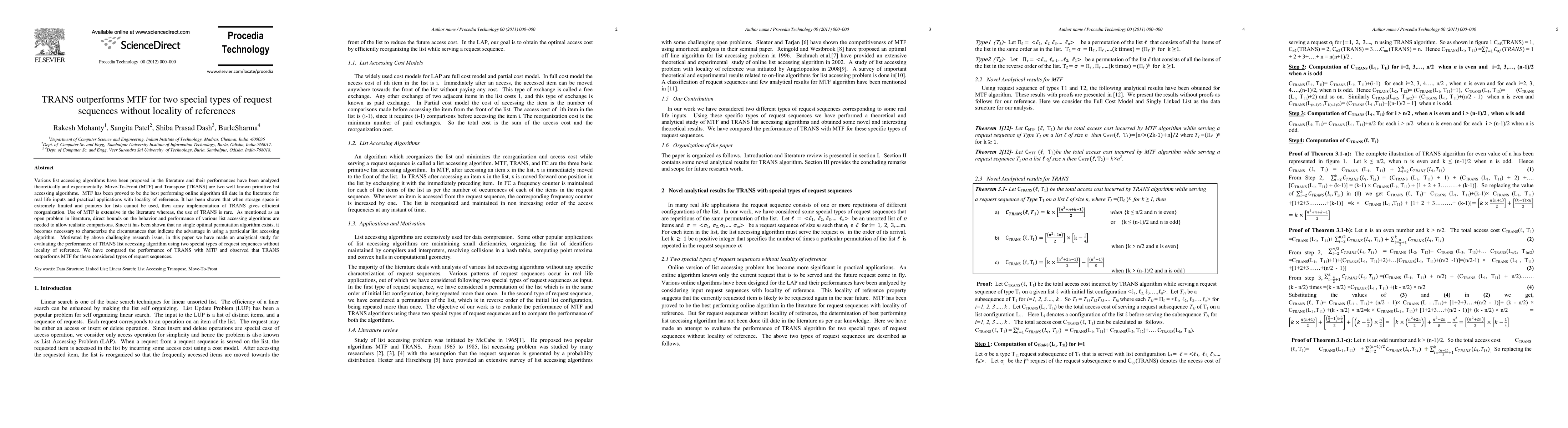 The TRANS algorithm outperforms MTF for two types of request sequences without locality of reference, offering a more efficient solution when storage space is limited.