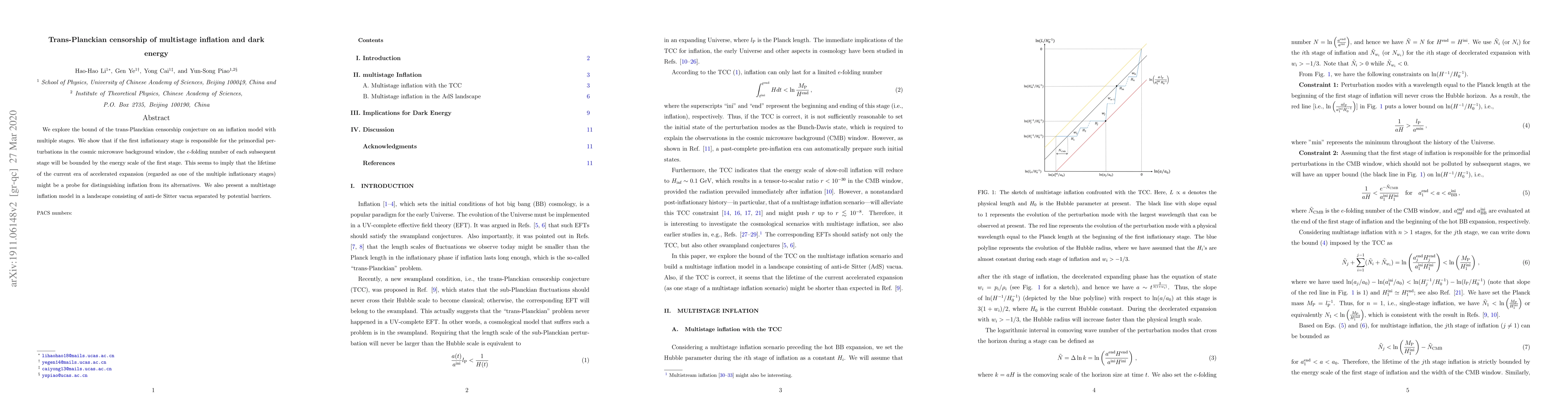 We explore the bound of the trans-Planckian censorship conjecture on an inflation model with multiple stages. We show that if the first inflationary stage is responsible for the primordial perturbations in the cosmic microwave background window, the $e$-folding number of each subsequent stage will be bounded by the energy scale of the first stage. This seems to imply that the lifetime of the current era of accelerated expansion (regarded as one of the multiple inflationary stages) might be a probe for distinguishing inflation from its alternatives. We also present a multistage inflation model in a landscape consisting of anti-de Sitter vacua separated by potential barriers.
