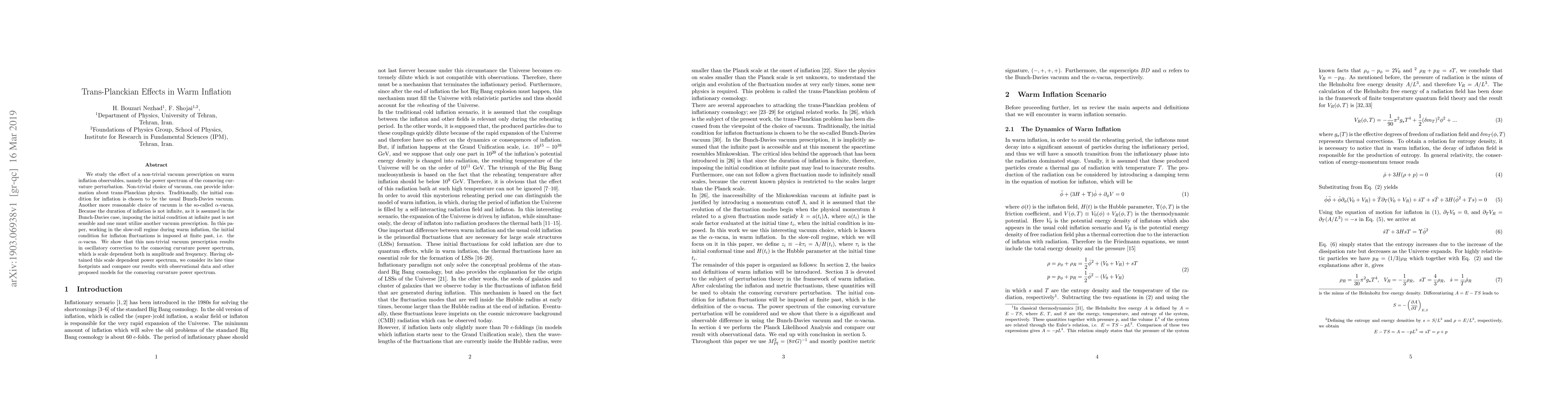This paper investigates how a non-trivial vacuum prescription affects warm inflation's comoving curvature power spectrum, leading to oscillatory corrections that depend on scale.