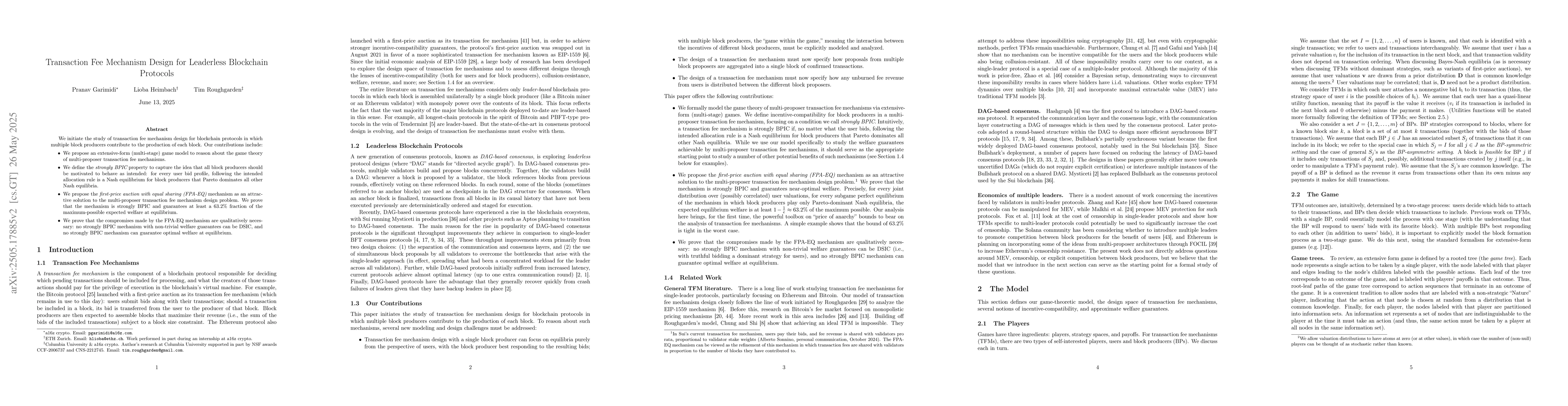 Researchers designed a transaction fee mechanism for leaderless blockchain protocols, introducing a game model and proposing the first-price auction with equal sharing as an attractive solution that guarantees 63.2% of maximum-possible expected welfare.