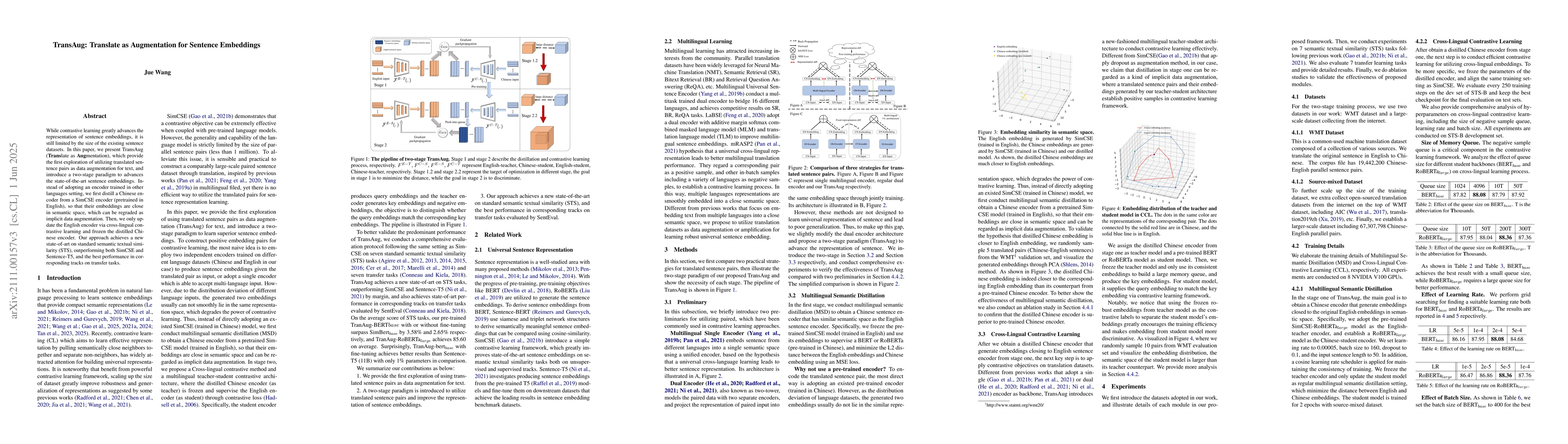 Researchers introduce TransAug, a method that uses translated sentence pairs to augment existing datasets for sentence embeddings, achieving state-of-the-art results on semantic textual similarity and transfer tasks.