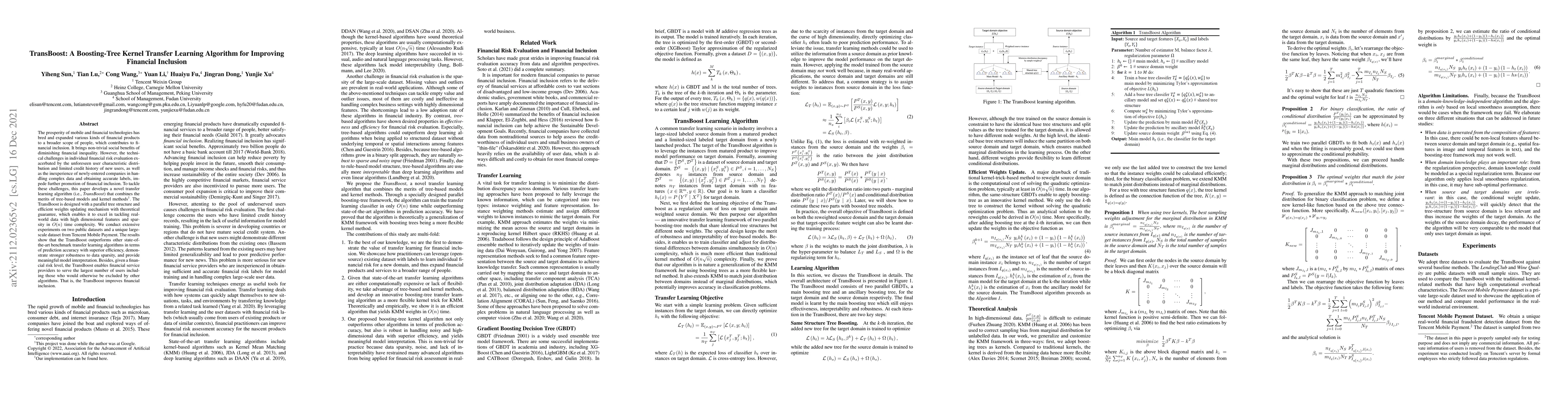 A new transfer learning algorithm called TransBoost improves financial inclusion by accurately evaluating individual financial risk with high efficiency and model interpretability, outperforming existing algorithms in terms of accuracy and robustness.