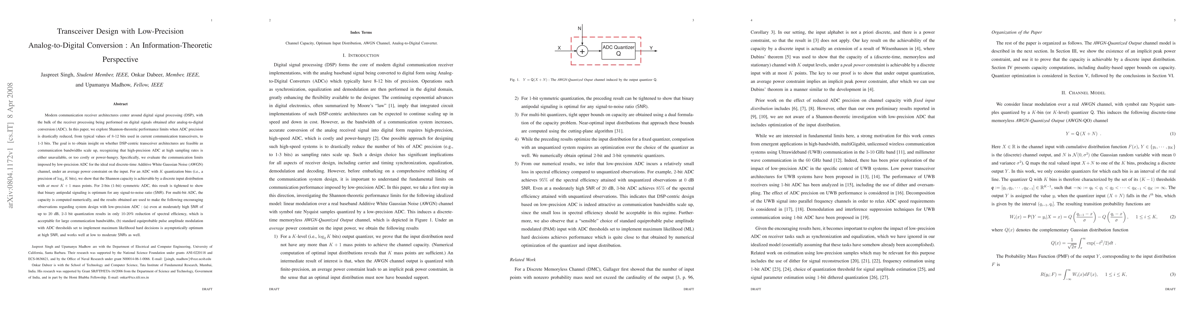 Researchers explore how reducing analog-to-digital conversion precision affects communication receiver performance, finding that even low-precision ADC can support high spectral efficiency with minimal loss.