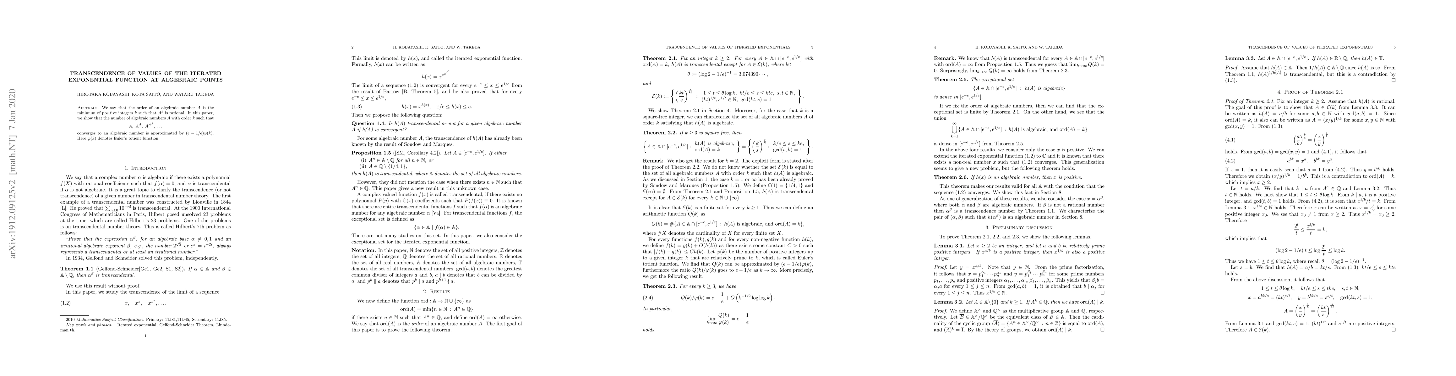 This paper shows that the order of algebraic numbers follows a pattern related to Euler's totient function, approximating the convergence of repeated exponentiations to an algebraic number.