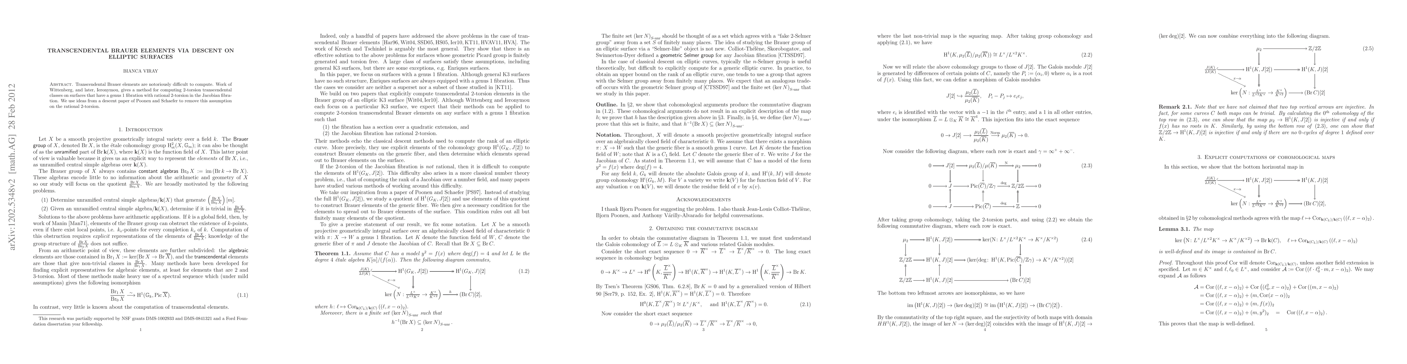 Researchers have developed a new method to calculate transcendental Brauer elements on elliptic surfaces without assuming rational 2-torsion in the Jacobian fibration, building on previous work and ideas from descent theory.