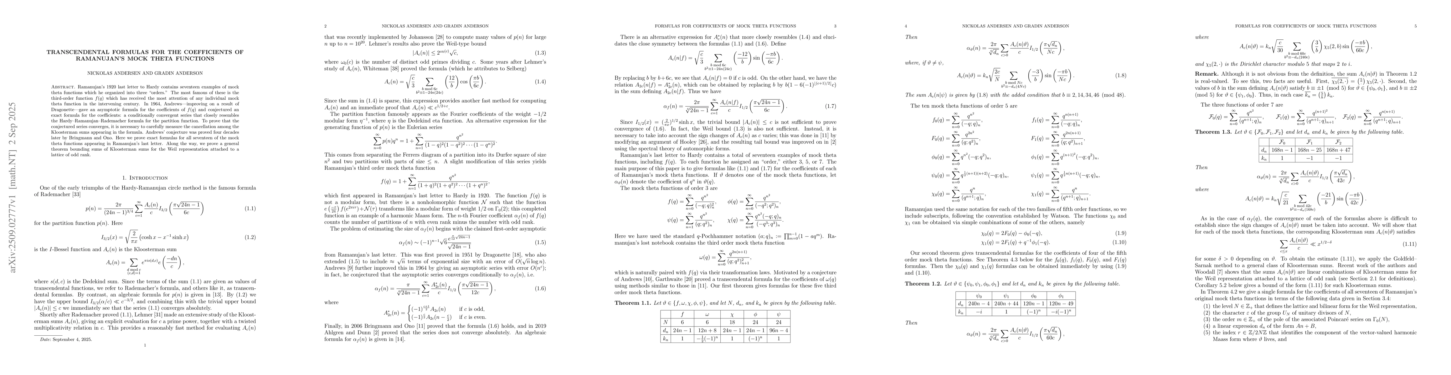 Ramanujan's 1920 last letter to Hardy contains seventeen examples of mock theta functions which he organized into three "orders." The most famous of these is the third-order function $f(q)$ which has received the most attention of any individual mock theta function in the intervening century. In 1964, Andrews--improving on a result of Dragonette--gave an asymptotic formula for the coefficients of $f(q)$ and conjectured an exact formula for the coefficients: a conditionally convergent series that closely resembles the Hardy-Ramanujan-Rademacher formula for the partition function. To prove that the conjectured series converges, it is necessary to carefully measure the cancellation among the Kloosterman sums appearing in the formula. Andrews' conjecture was proved four decades later by Bringmann and Ono. Here we prove exact formulas for all seventeen of the mock theta functions appearing in Ramanujan's last letter. Along the way, we prove a general theorem bounding sums of Kloosterman sums for the Weil representation attached to a lattice of odd rank.