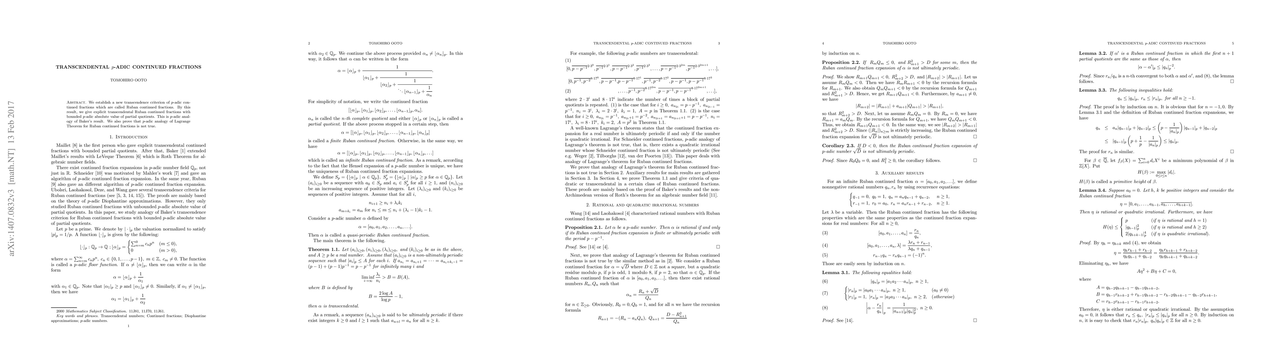 This research provides new insights into the properties of p-adic numbers and their continued fractions, particularly in relation to algebraic and transcendental numbers, and offers a novel approach to analyzing these objects.