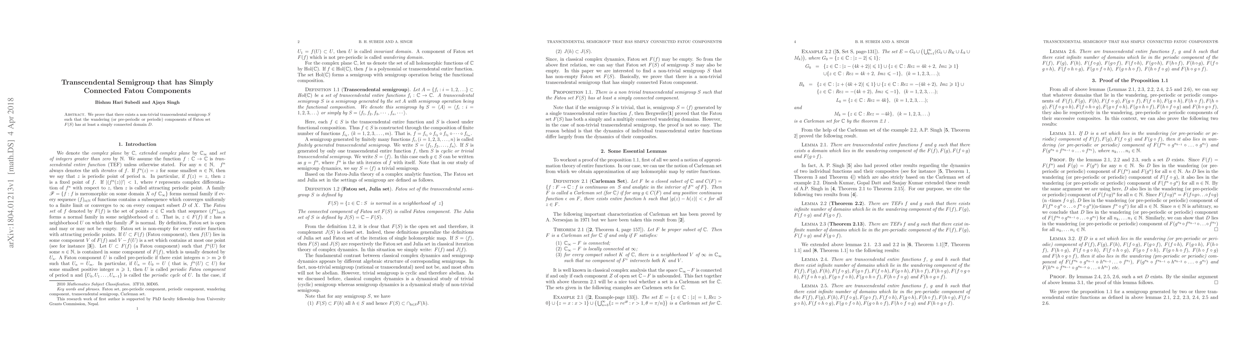 This research proves the existence of a non-trivial transcendental semigroup S with a simply connected domain D within its Fatou set F(S), demonstrating the presence of simply connected Fatou components. The study focuses on wandering, pre-periodic, and periodic components within the Fatou set.