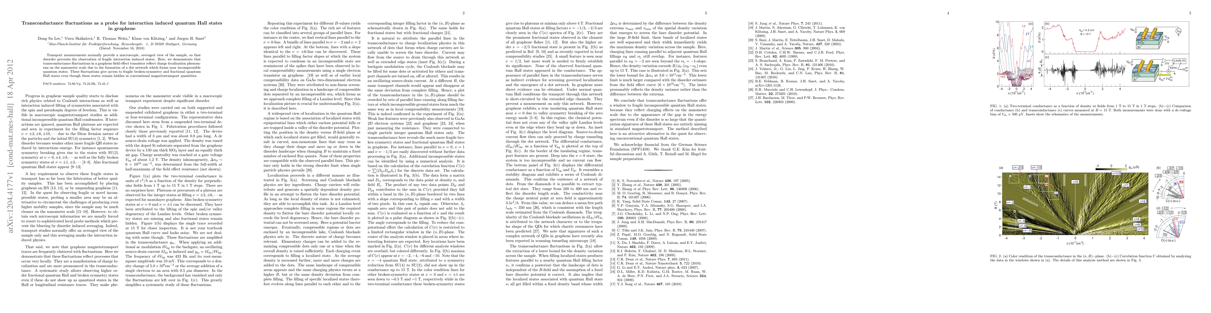 Transport measurements normally provide a macroscopic, averaged view of the sample, so that disorder prevents the observation of fragile interaction induced states. Here, we demonstrate that transconductance fluctuations in a graphene field effect transistor reflect charge localization phenomena on the nanometer scale due to the formation of a dot network which forms near incompressible quantum states. These fluctuations give access to fragile broken-symmetry and fractional quantum Hall states even though these states remain hidden in conventional magnetotransport quantities.