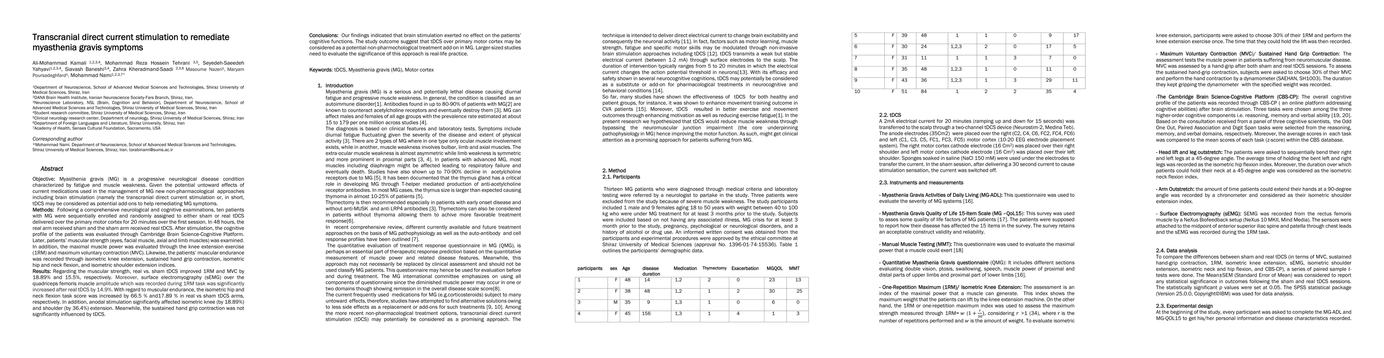 Further studies are needed to confirm the effectiveness of tDCS as a treatment for myasthenia gravis symptoms and its potential use in real-life practice.