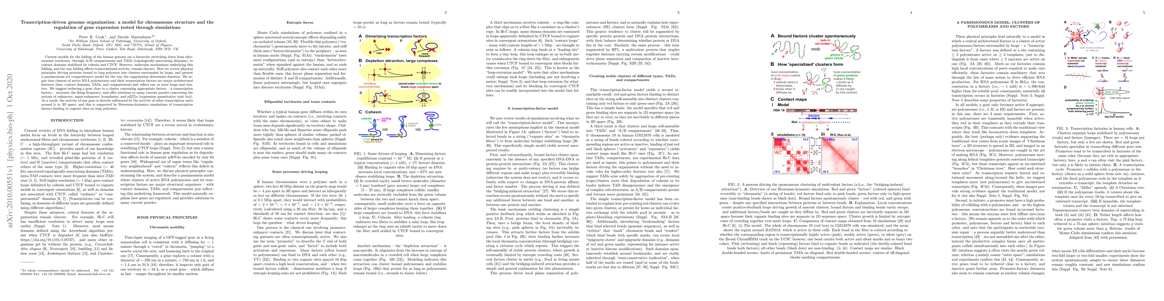 This paper proposes a model where transcription-driven clusters of active RNA polymerases, termed transcription factories, are central to genome organization and gene expression regulation. Simulations support the idea that genes positioned near these factories exhibit higher activity, resolving puzzles about enhancers, super-enhancers, and eQTLs.