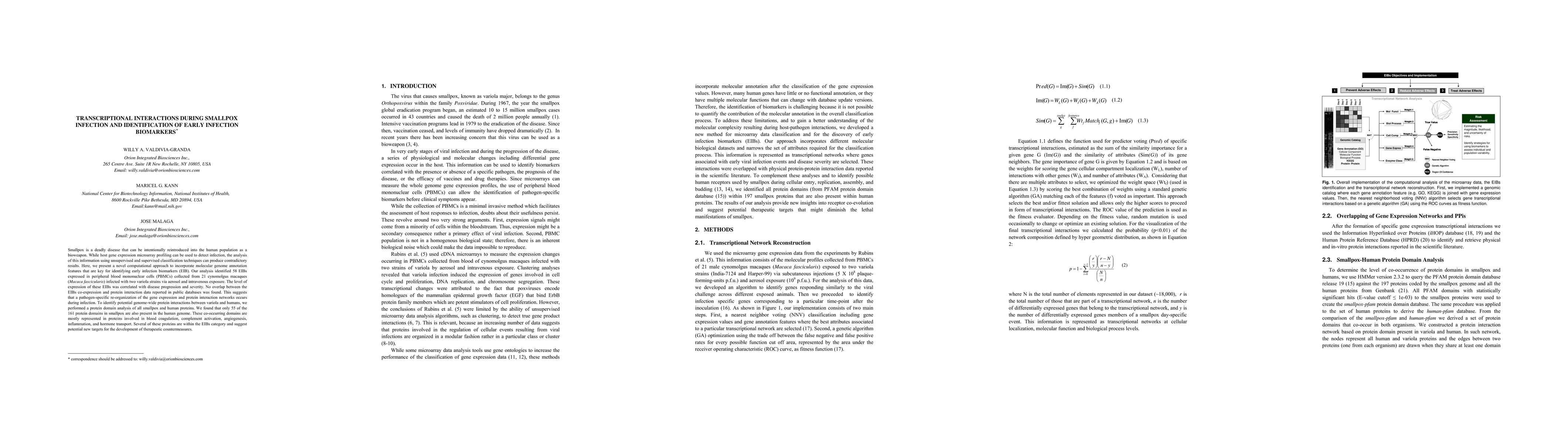 Researchers developed a novel approach to identify early infection biomarkers for smallpox, finding 58 genes that increase in expression after aerosol or intravenous exposure, and discovered protein interactions that could lead to new therapeutic targets.