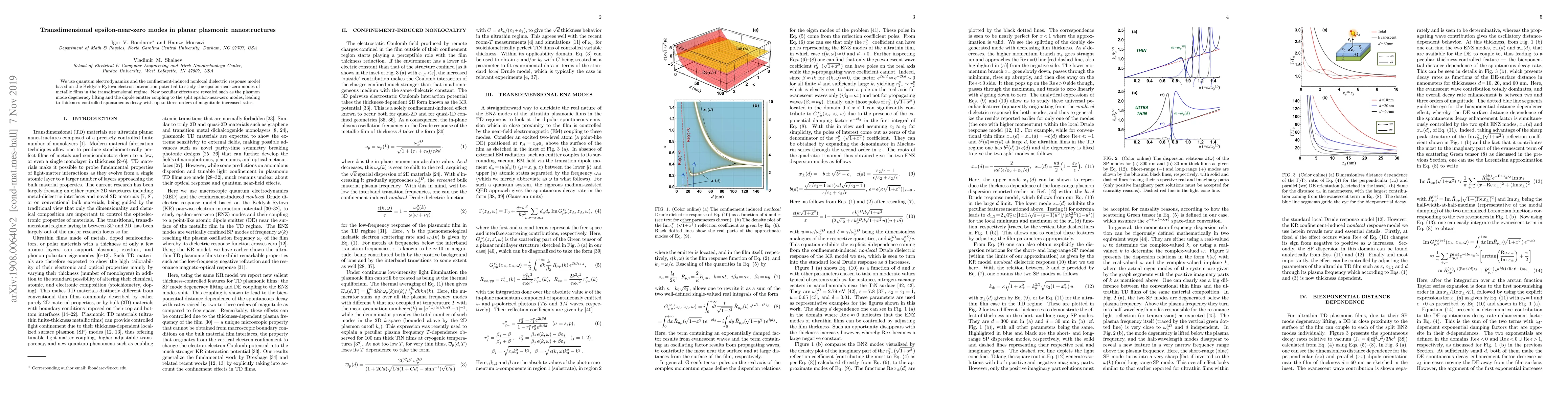 The research employs macroscopic quantum electrodynamics (QED) and the confinement-induced nonlocal Drude dielectric response model based on the Keldysh-Rytova electron interaction potential to study epsilon-near-zero (ENZ) modes in ultrathin plasmonic films in the transdimensional regime.