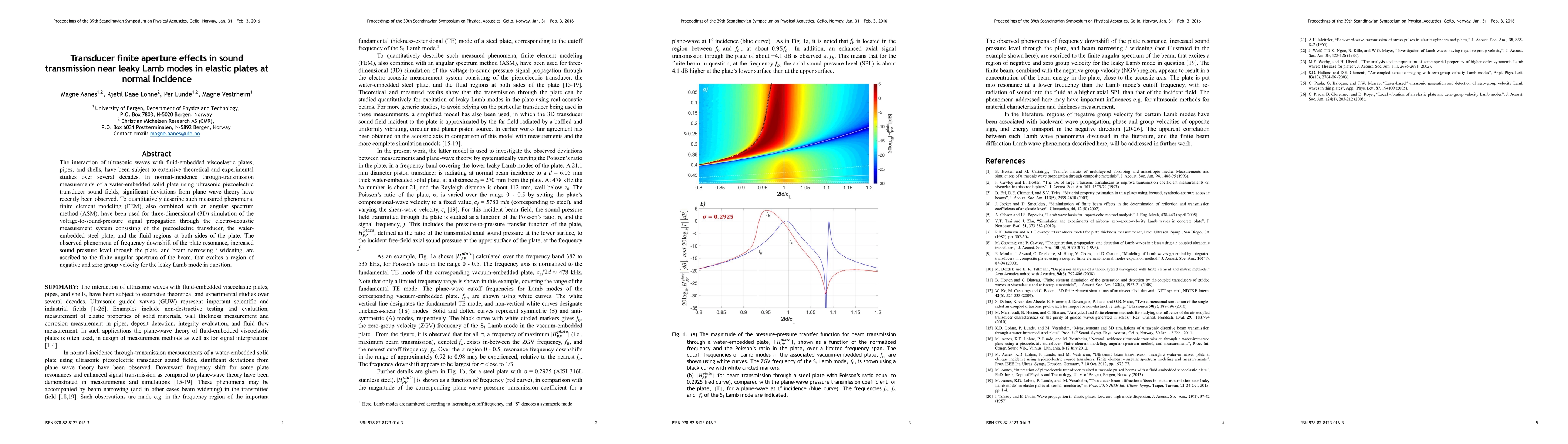 Researchers used finite element modeling to study sound transmission through a water-embedded steel plate, finding that finite aperture effects cause frequency downshifts and beam narrowing/widening near leaky Lamb modes. The findings challenge plane wave theory and have implications for understanding ultrasonic wave propagation in complex media.