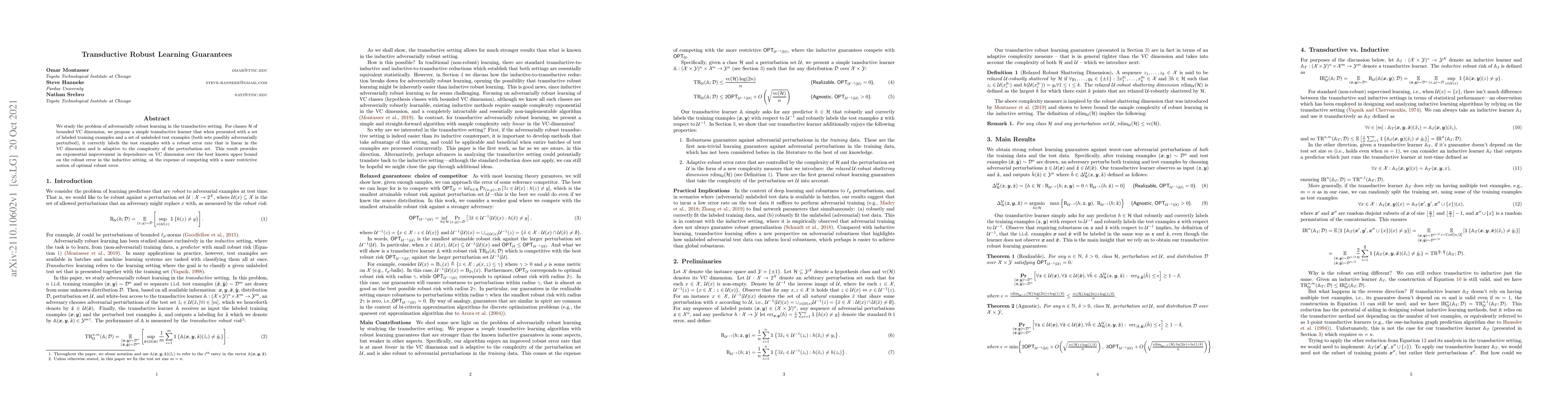 We study the problem of adversarially robust learning in the transductive setting. For classes $\mathcal{H}$ of bounded VC dimension, we propose a simple transductive learner that when presented with a set of labeled training examples and a set of unlabeled test examples (both sets possibly adversarially perturbed), it correctly labels the test examples with a robust error rate that is linear in the VC dimension and is adaptive to the complexity of the perturbation set. This result provides an exponential improvement in dependence on VC dimension over the best known upper bound on the robust error in the inductive setting, at the expense of competing with a more restrictive notion of optimal robust error.