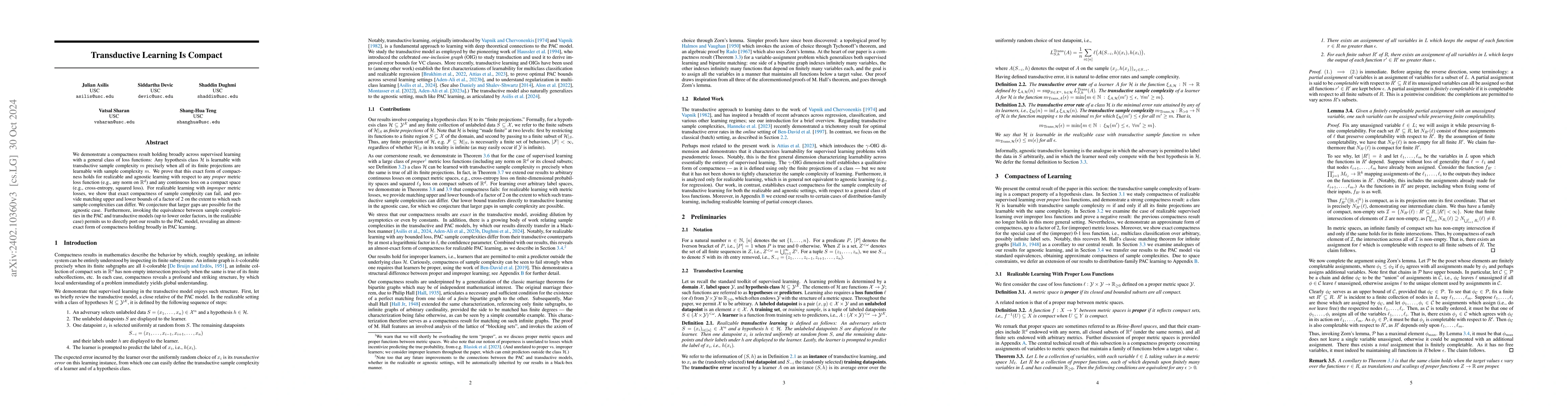 This paper establishes a compactness result in transductive learning, showing that a hypothesis class can be learned if all its finite projections can be learned, for various loss functions. It reveals an almost-exact form of compactness in both realizable and agnostic learning, except for improper metric losses where a factor of 2 difference in sample complexities is shown.