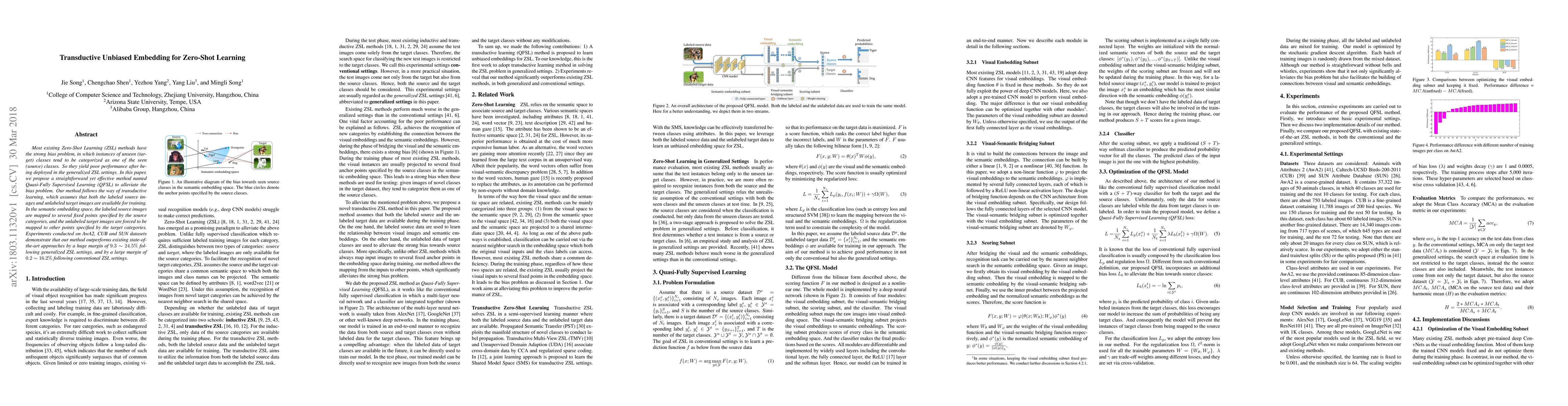 This paper proposes Quasi-Fully Supervised Learning to alleviate bias in Zero-Shot Learning, outperforming existing methods with a 9.3-24.5% margin on generalized ZSL settings and 0.2-16.2% on conventional ZSL settings.