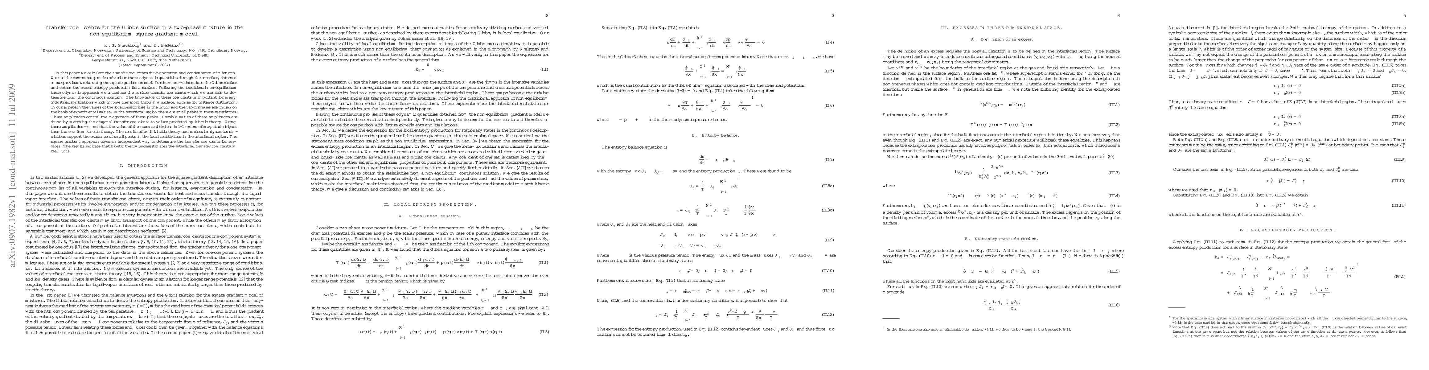 This paper calculates transfer coefficients for evaporation and condensation in mixtures using the non-equilibrium square gradient model, introducing the Gibbs surface and determining surface transfer coefficients from continuous profiles. The results suggest kinetic theory underestimates interfacial transfer coefficients, with cross resistivities orders of magnitude higher than predicted.