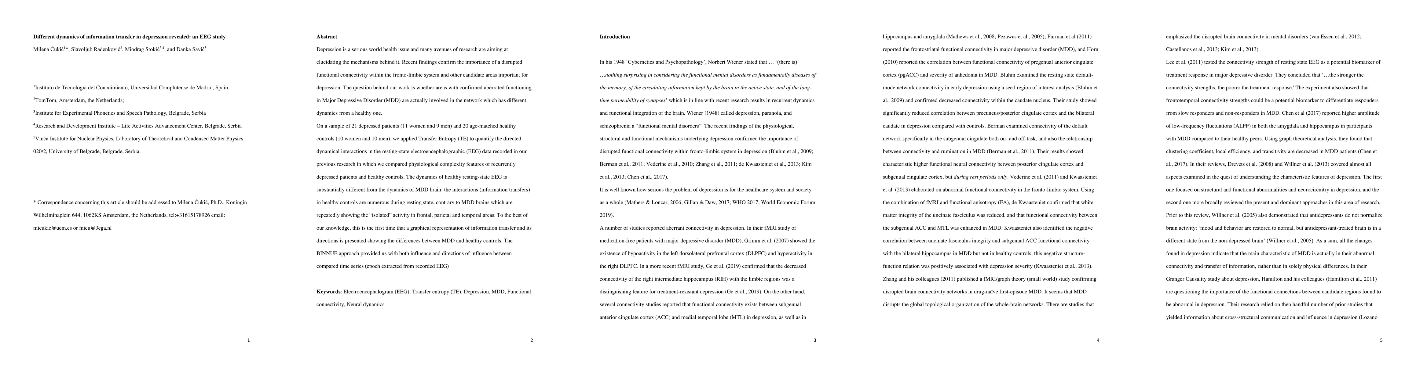 This study uses EEG to analyze brain connectivity in people with depression, revealing aberrant dynamics between different brain regions. It provides new insights into the neural mechanisms underlying major depressive disorder.