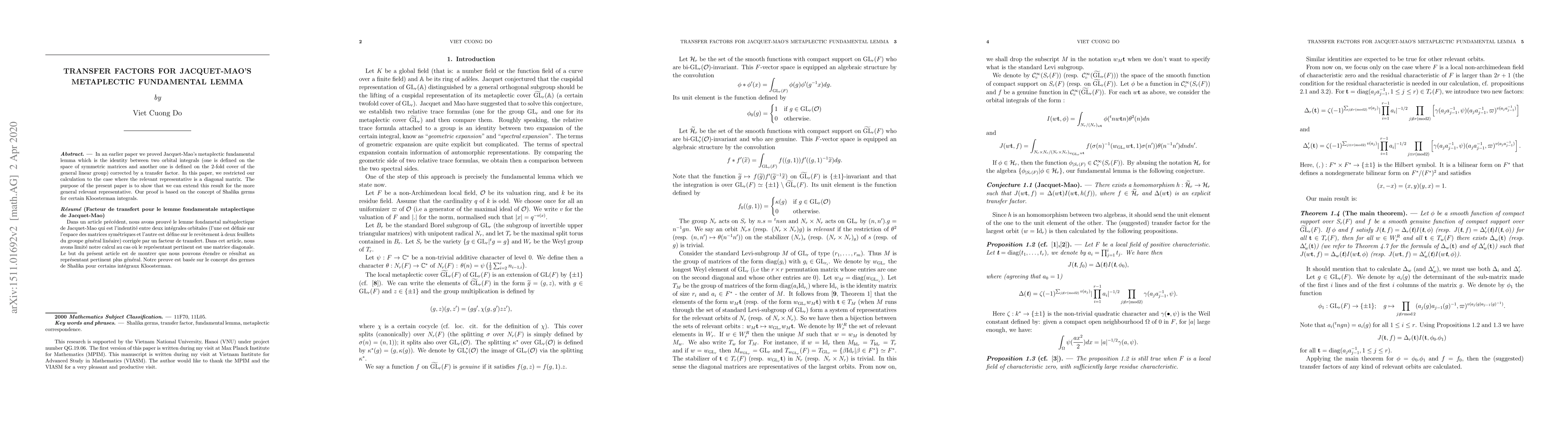 In an earlier paper we proved Jacquet-Mao's metaplectic fundamental lemma which is the identity between two orbital integrals (one is defined on the space of symmetric matrices and another one is defined on the $2$-fold cover of the general linear group) corrected by a transfer factor. But we restricted to the case where the relevant representative is a diagonal matrix. Now, we show that we can extend this result for the more general relevant representative. Our proof is based on the concept of Shalika germs for certain Kloosterman integrals.