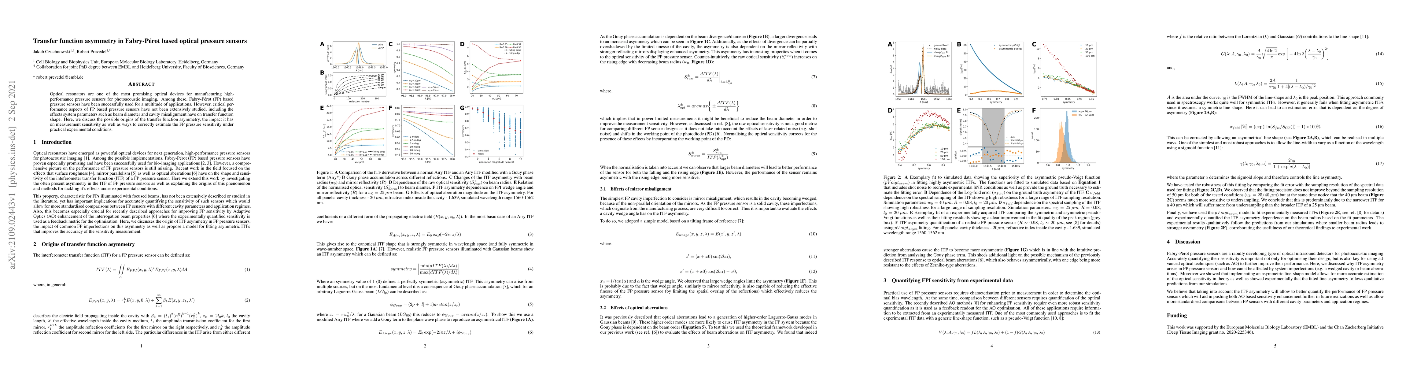 This paper investigates the asymmetry in the transfer function of Fabry-Pérot based optical pressure sensors, exploring its origins and impact on measurement sensitivity. It also proposes methods for accurately estimating the sensor's sensitivity under practical experimental conditions.