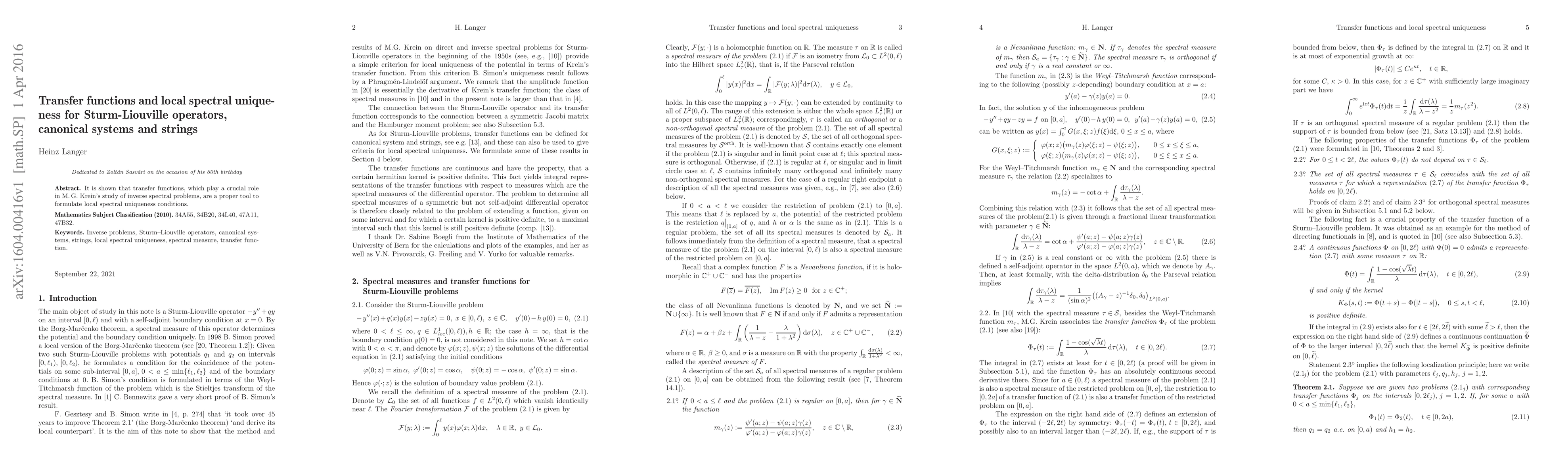 It is shown that transfer functions, which play a crucial role in M.G. Krein's study of inverse spectral problems, are a proper tool to formulate local spectral uniqueness conditions.