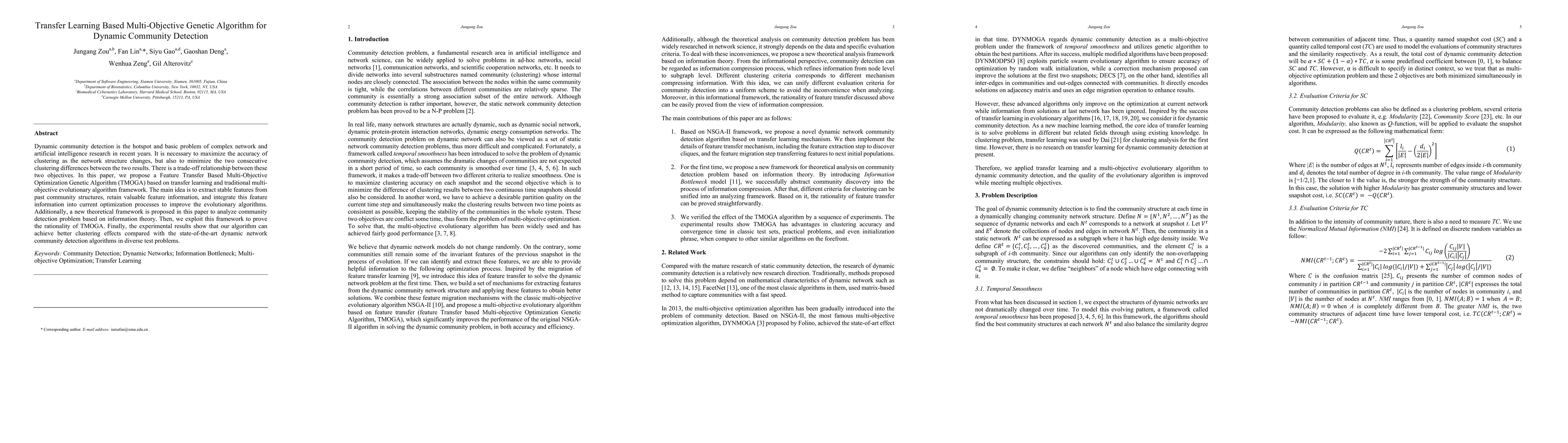 The paper introduces a Transfer Learning Based Multi-Objective Genetic Algorithm (TMOGA) to improve dynamic community detection by leveraging stable features from previous clusterings. The proposed method outperforms existing algorithms, demonstrating better clustering accuracy and minimal changes between consecutive clusterings.