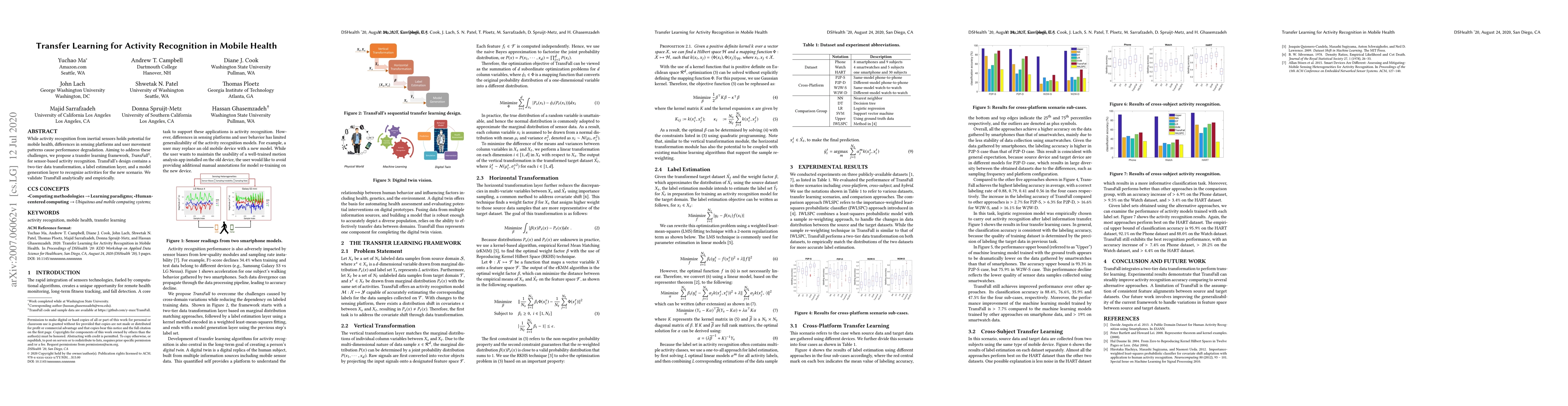 This paper proposes TransFall, a transfer learning framework for activity recognition in mobile health using inertial sensors, addressing performance degradation due to platform and movement pattern differences through a two-tier data transformation and model generation. The framework is validated both analytically and empirically.