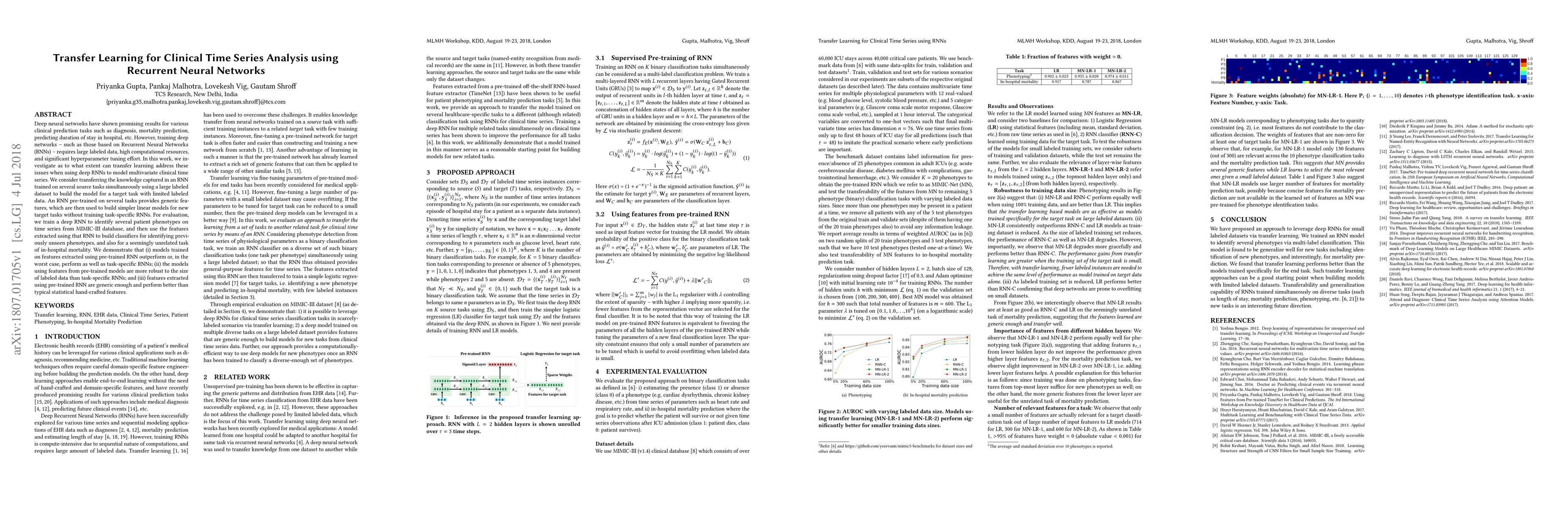 The paper proposes a method for leveraging deep RNNs via transfer learning for clinical time series analysis, demonstrating improved performance and robustness with limited labeled data.