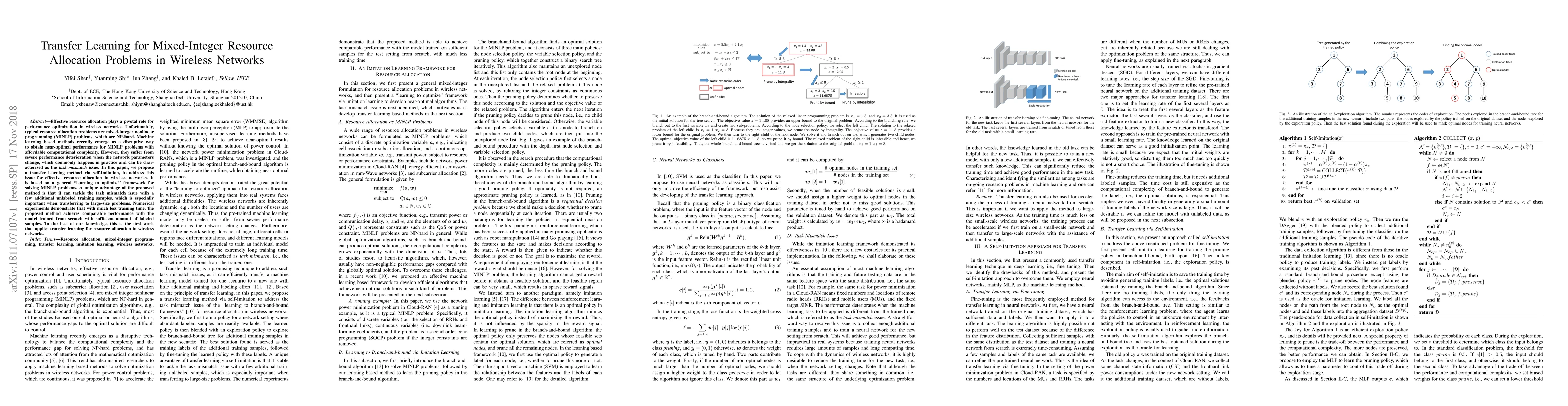 Effective resource allocation plays a pivotal role for performance optimization in wireless networks. Unfortunately, typical resource allocation problems are mixed-integer nonlinear programming (MINLP) problems, which are NP-hard. Machine learning based methods recently emerge as a disruptive way to obtain near-optimal performance for MINLP problems with affordable computational complexity. However, they suffer from severe performance deterioration when the network parameters change, which commonly happens in practice and can be characterized as the task mismatch issue. In this paper, we propose a transfer learning method via self-imitation, to address this issue for effective resource allocation in wireless networks. It is based on a general "learning to optimize" framework for solving MINLP problems. A unique advantage of the proposed method is that it can tackle the task mismatch issue with a few additional unlabeled training samples, which is especially important when transferring to large-size problems. Numerical experiments demonstrate that with much less training time, the proposed method achieves comparable performance with the model trained from scratch with sufficient amount of labeled samples. To the best of our knowledge, this is the first work that applies transfer learning for resource allocation in wireless networks.