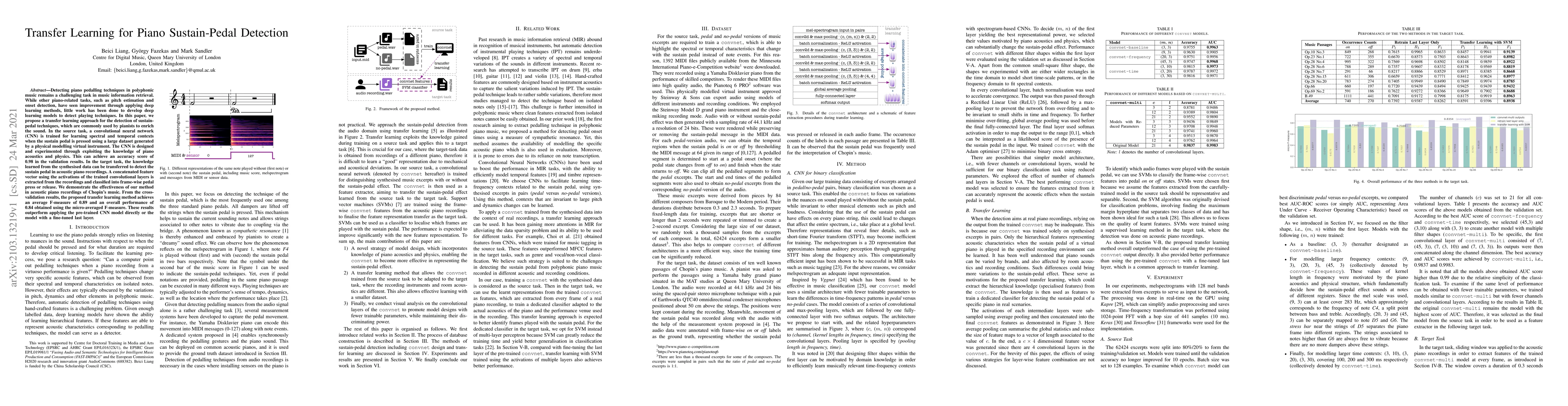 This paper proposes a transfer learning approach for detecting sustain-pedal techniques in piano music using deep learning. A convolutional neural network trained on synthesized data achieves high accuracy and is then transferred to classify sustain pedal events in acoustic recordings, demonstrating effective performance with an F-measure of 0.89.