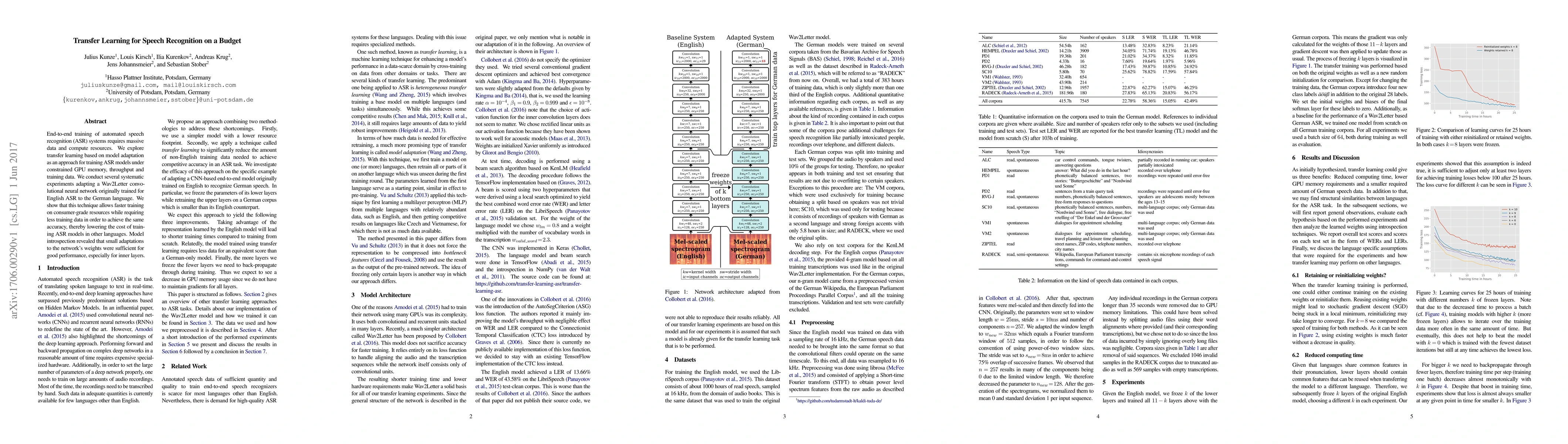 End-to-end training of automated speech recognition (ASR) systems requires massive data and compute resources. We explore transfer learning based on model adaptation as an approach for training ASR models under constrained GPU memory, throughput and training data. We conduct several systematic experiments adapting a Wav2Letter convolutional neural network originally trained for English ASR to the German language. We show that this technique allows faster training on consumer-grade resources while requiring less training data in order to achieve the same accuracy, thereby lowering the cost of training ASR models in other languages. Model introspection revealed that small adaptations to the network's weights were sufficient for good performance, especially for inner layers.