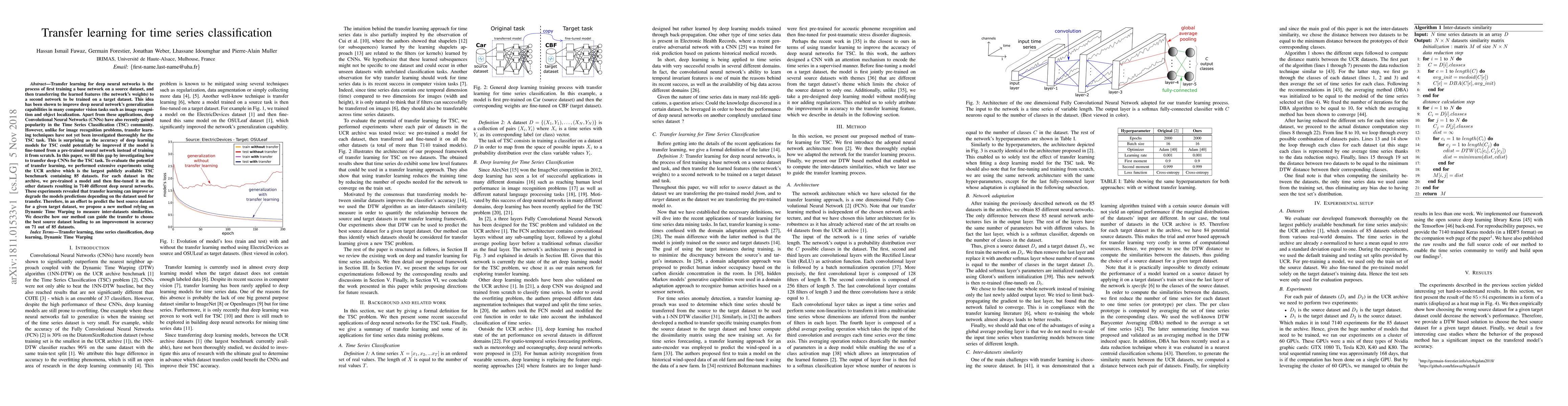 The paper presents a novel approach for choosing the best source dataset for transfer learning in time series classification using DTW-based similarity measures.
