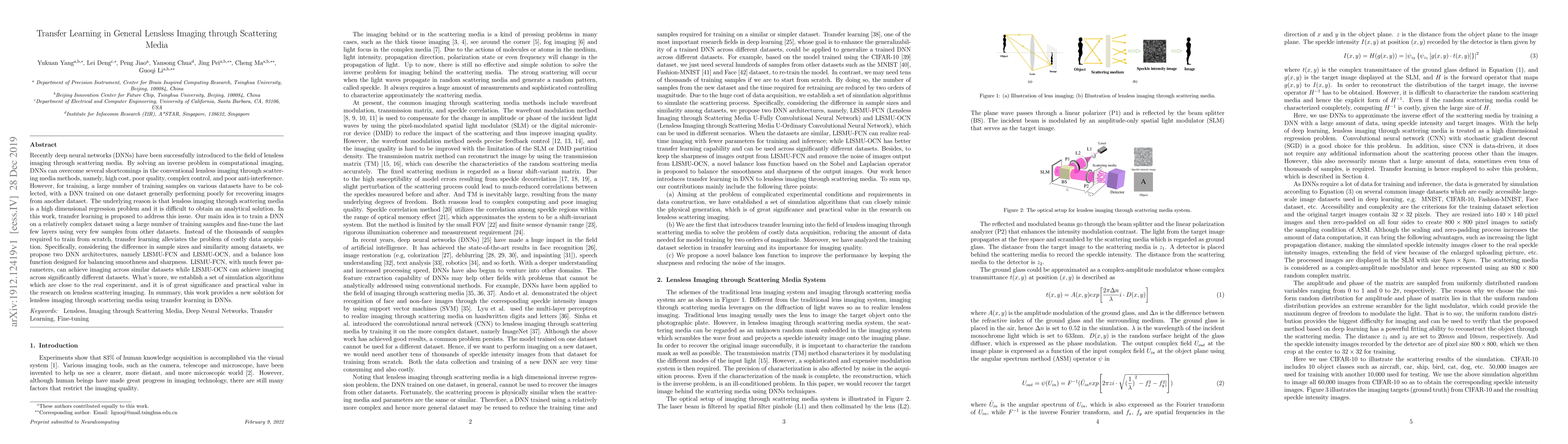 This paper proposes transfer learning to improve lensless imaging through scattering media using deep neural networks (DNNs). It introduces two DNN architectures, LISMU-FCN and LISMU-OCN, to handle similar and significantly different datasets respectively, reducing the need for extensive training data.