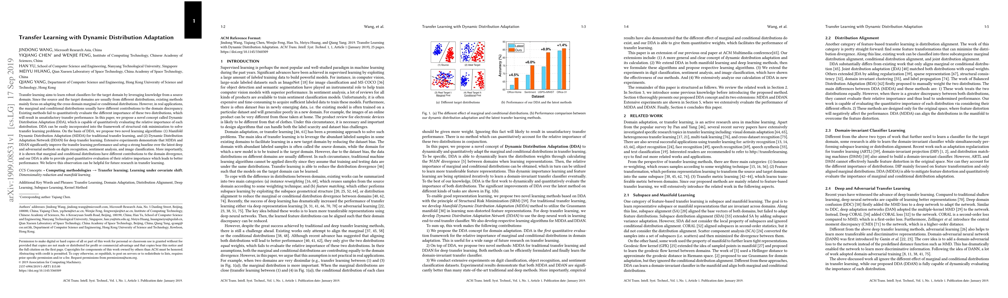 This paper introduces Dynamic Distribution Adaptation (DDA) to evaluate the relative importance of marginal and conditional distributions in transfer learning, proposing two algorithms—Manifold Dynamic Distribution Adaptation (MDDA) and Dynamic Distribution Adaptation Network (DDAN)—that significantly enhance transfer learning performance across various tasks. The study highlights that DDA provides a quantitative evaluation of distribution contributions, leading to improved results.