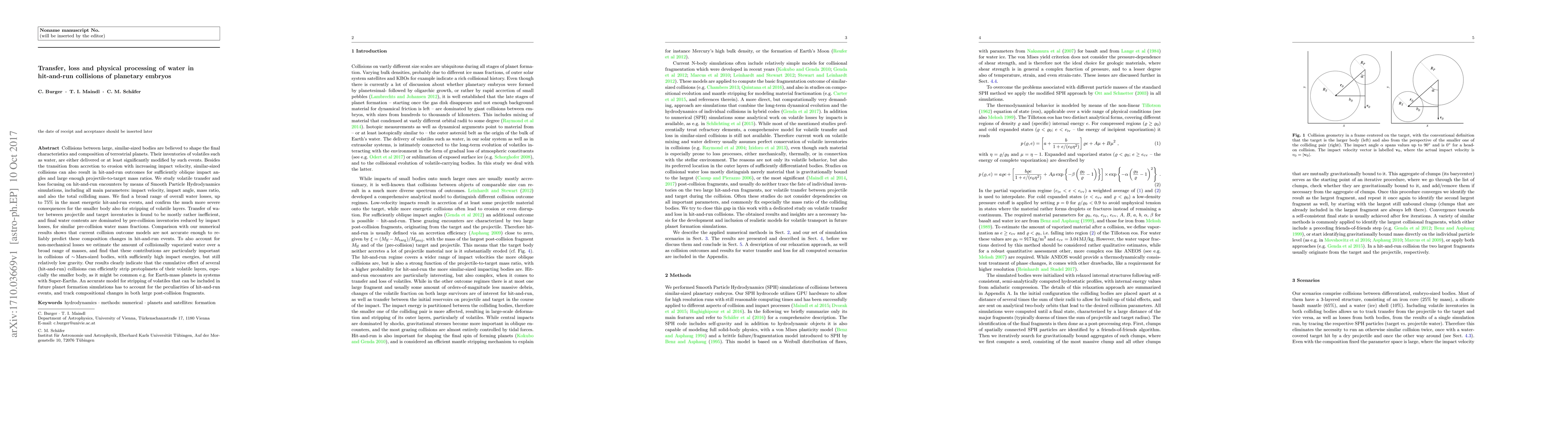 This study uses Smooth Particle Hydrodynamics simulations to investigate water transfer and loss during hit-and-run collisions between planetary embryos, finding significant water loss (up to 75%) and inefficient water transfer, challenging current collision models. Vaporized water is especially important in high-energy, low-gravity collisions of Mars-sized bodies.